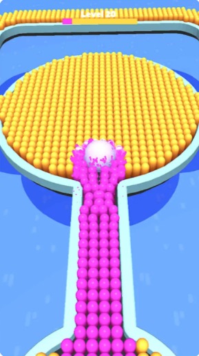 2、关卡没有输赢,只有颜色收集度,刷满100%自动解锁新皮肤,从猫爪到星云随便换,换完继续滚,压力留在上一局。
