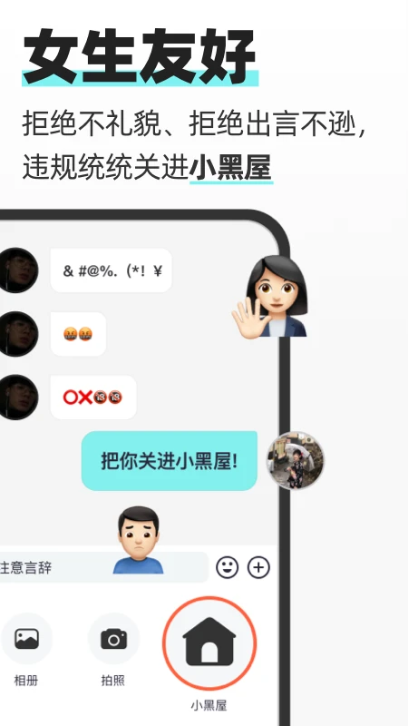 2、严格违规处理机制将不礼貌用户永久关进小黑屋,营造被尊重被保护的女性友好环境